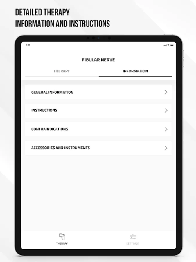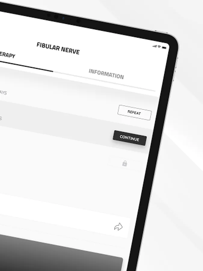 Our app offers assistance in the remote rehabilitation of the Peroneal Nerve through special sessions prepared by professional rehabilitators and physiotherapists. The application has a lot of information about the disease, indications and contraindications. You can share your therapy progress with your doctor.