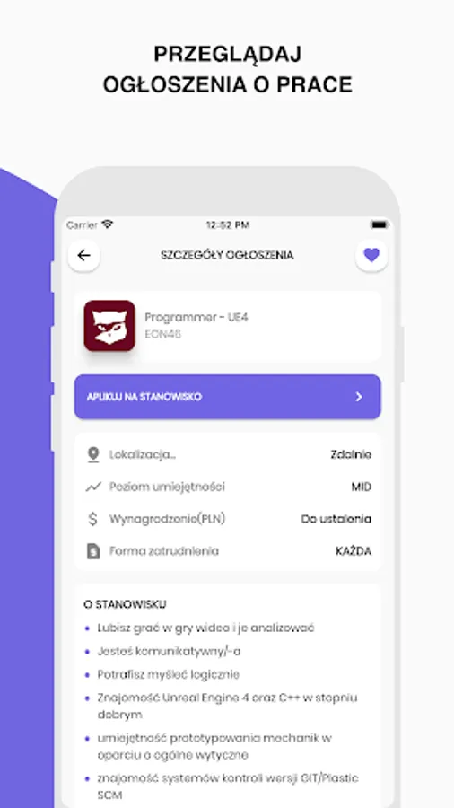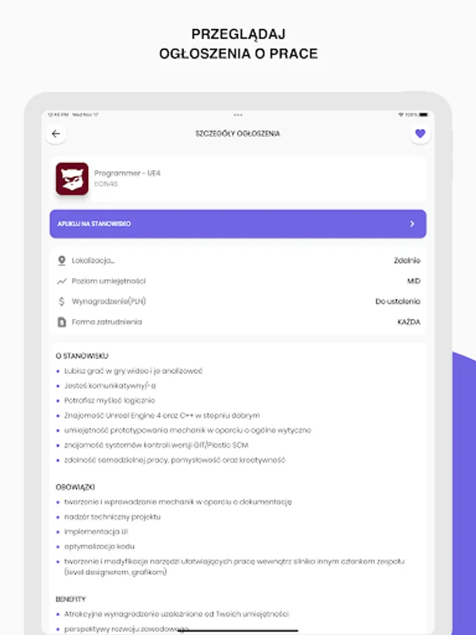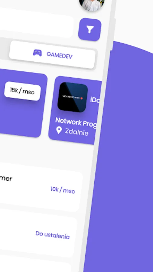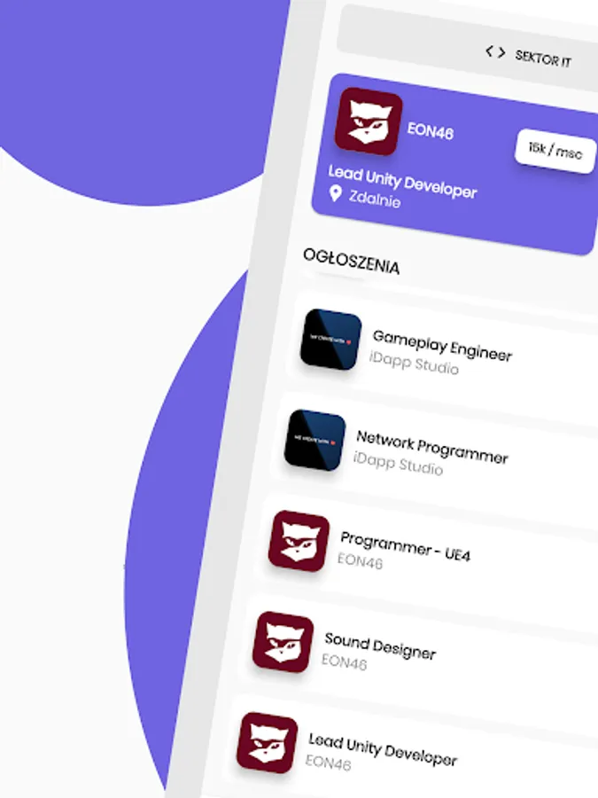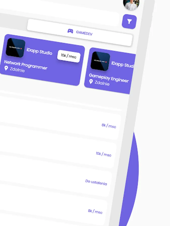 The Pogjob app offers a wide range of offers from the IT and Gamedev sectors. Get a new job as a programmer, graphic designer, video editor or even musician! Work in the best companies from around the world.
