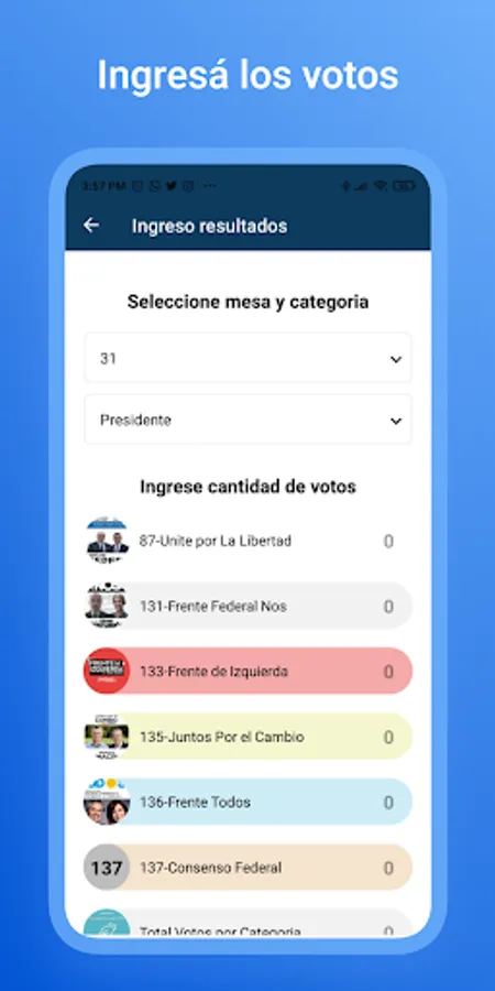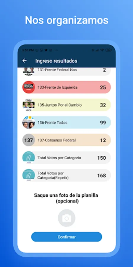 App to keep track of the minutes of the schools and to load the partial results for senators.