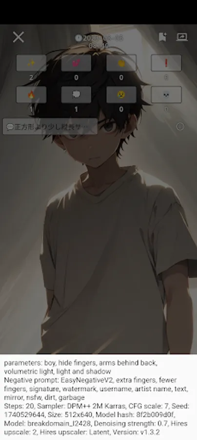 Registered AI images can be viewed with a light operation. Press the mood button on your favorite image or add a comment. Also, by bookmarking, you can continue to communicate through the image forever. In addition, generation prompt information is also posted, so why not use it as a reference for your own AI generation?