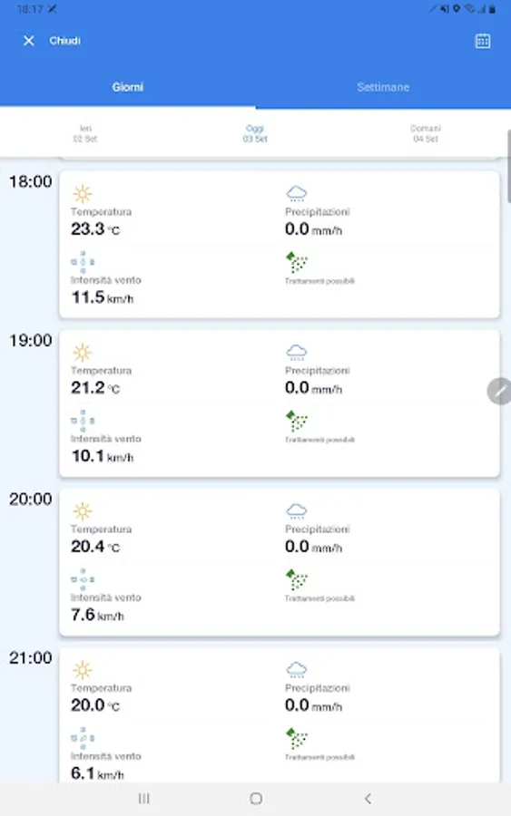 - limited treatments due to possible problems with too high or too low temperature, too strong wind, rain forecast after a few hours)