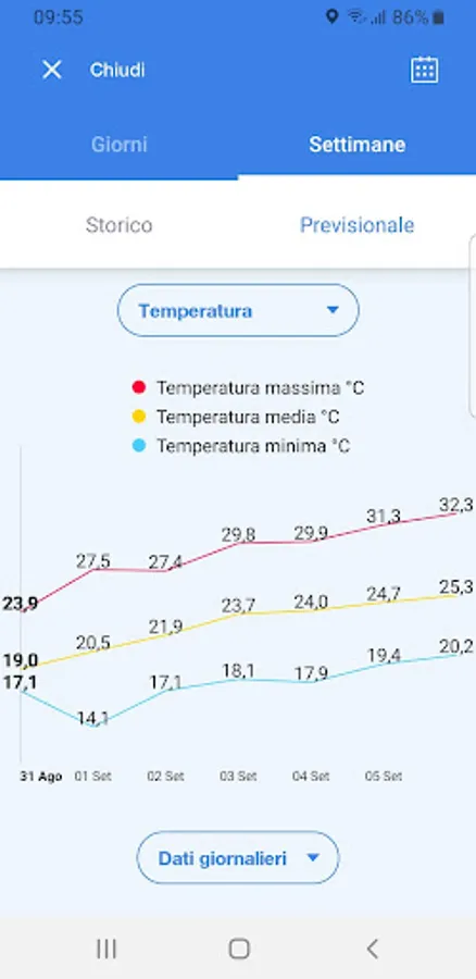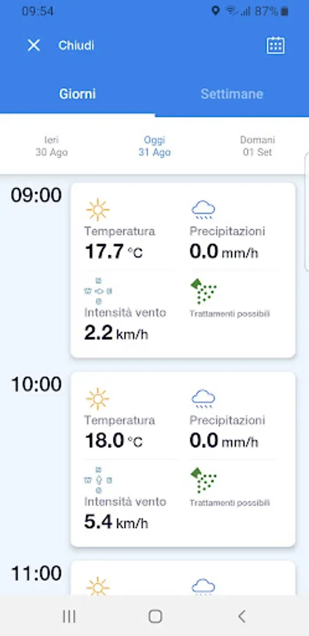 Once you have installed your virtual weather stations, you can have immediate access to hourly data, both the weather forecast for the next 7 days, and the historical weather data for the last 30 days.