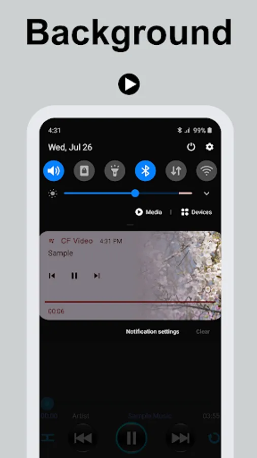 When listening to music videos in the background, you can save battery by playing only the sound.