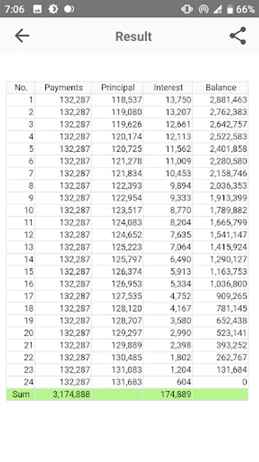 Recurrence by repayments, payments of principal, interest, and the balance can be calculated.
