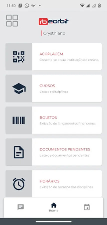 At this moment, the basic features of interaction are already available: access to notes, attendance, event schedule, download of tickets and receipt of messages from the institution.