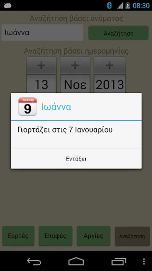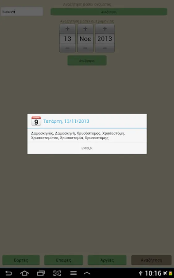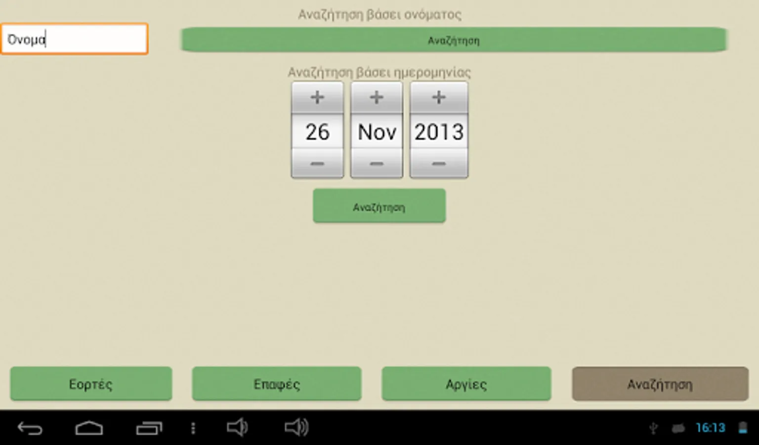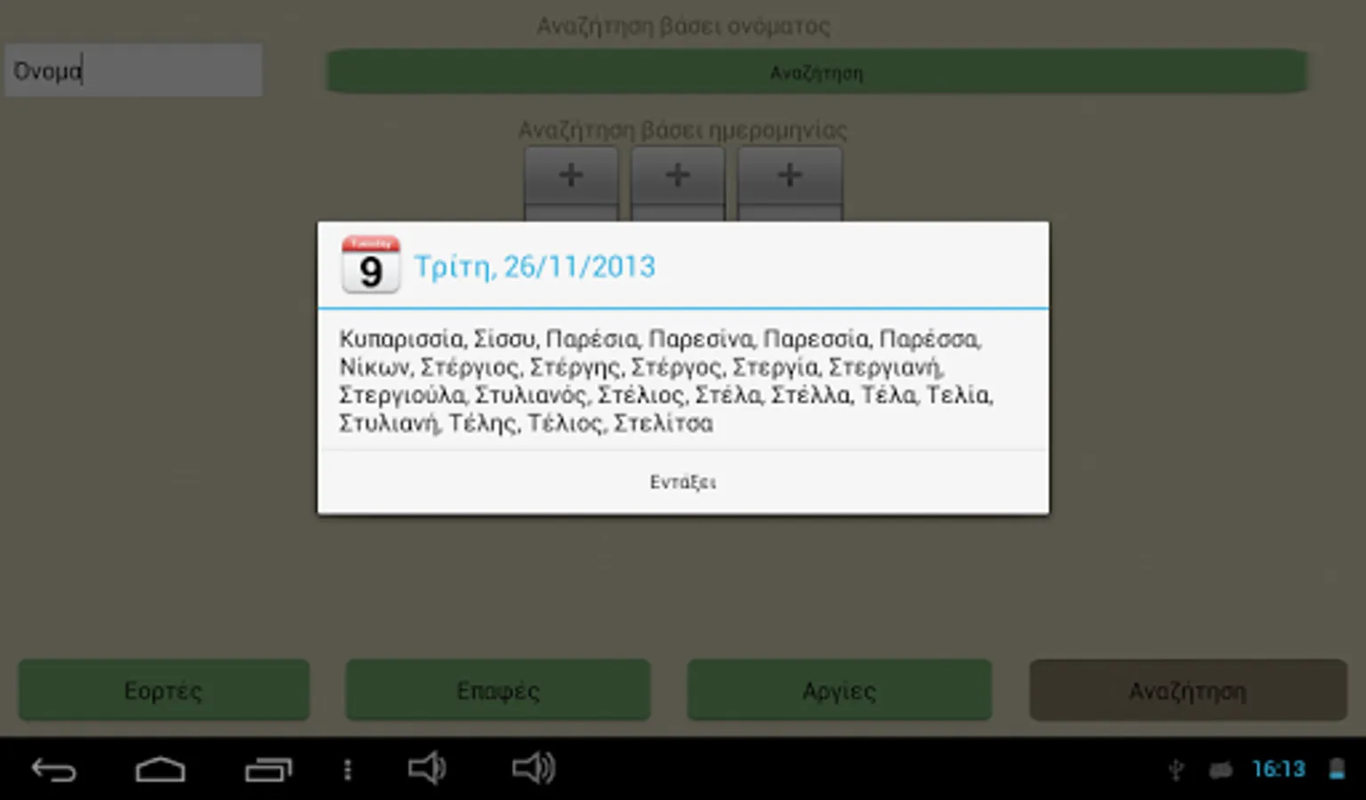 ✓ Αναζήτηση εορτών βάσει ονόματος, ελληνικά ή greeklish