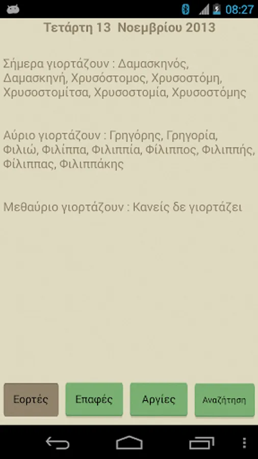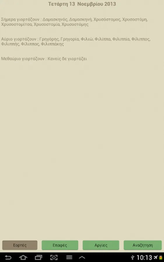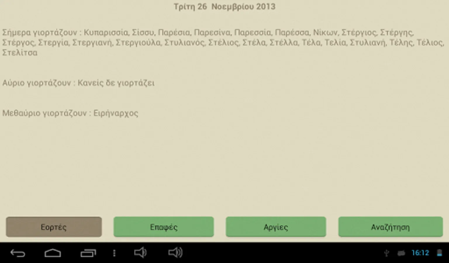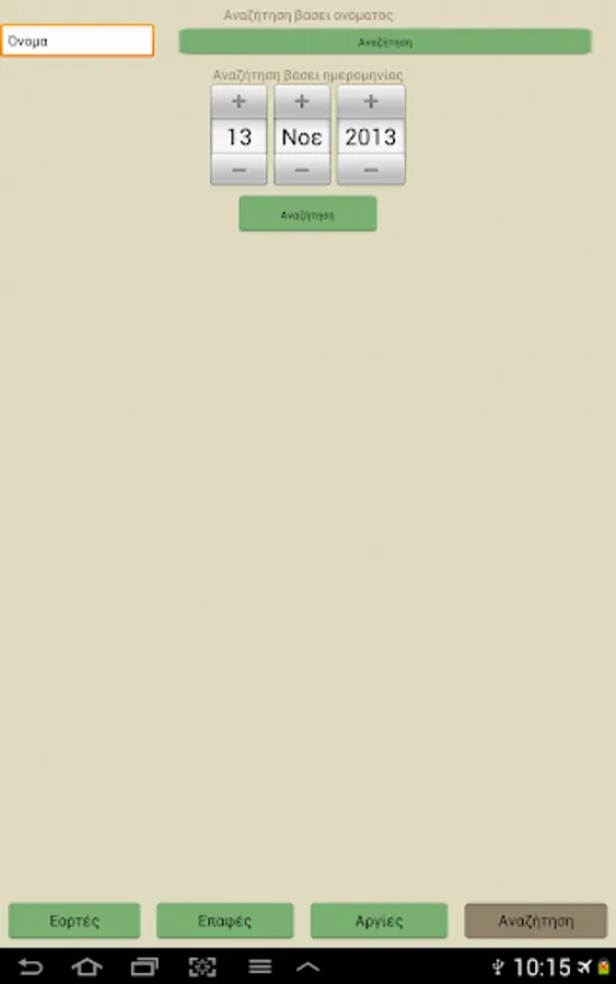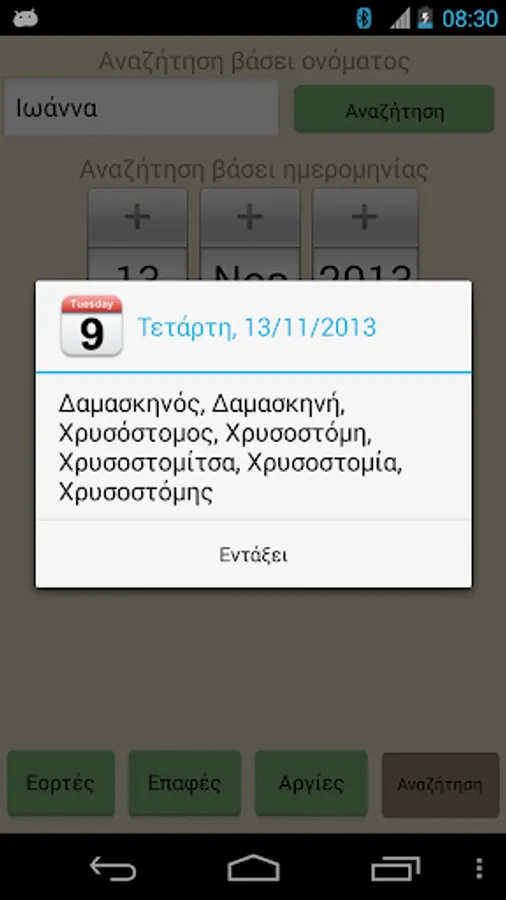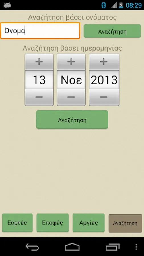 ✓ Αναζήτηση εορτών βάσει ονόματος, ελληνικά ή greeklish