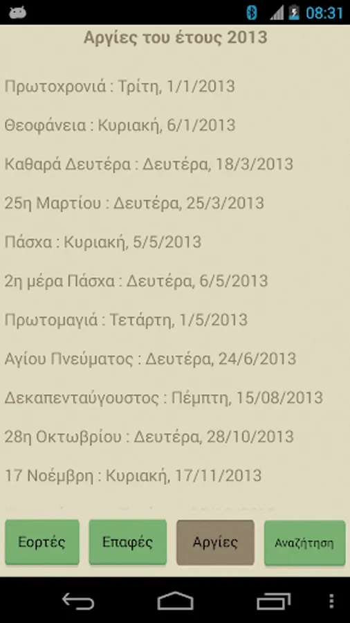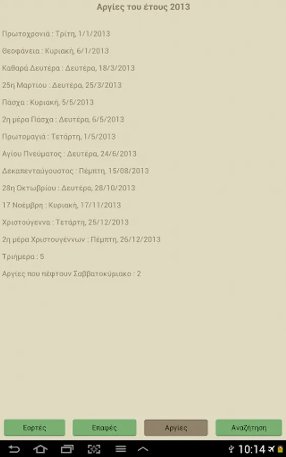 ✓ Υπολογίζει τις αργίες του έτους μέχρι το 2050!