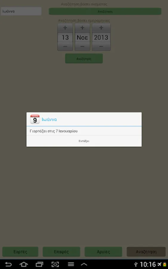 ✓ Αναζήτηση εορτών βάσει ημερομηνίας