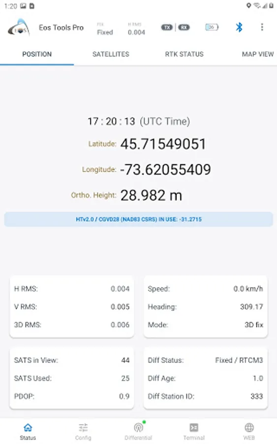 The app features a built-in NTRIP client to access RTK or DGNSS correction from an RTK Network. Eos Tools Pro also allows audible user configurable alarms and runs in the background of your mapping/surveying software. Version 2.0.0 and up offer an integrated browser to run HTML5 apps.