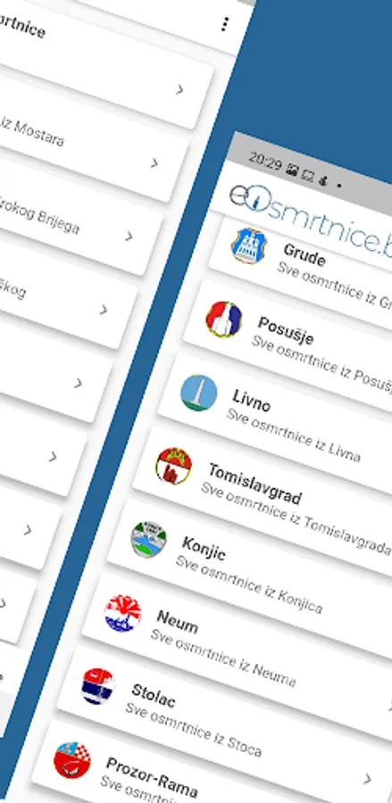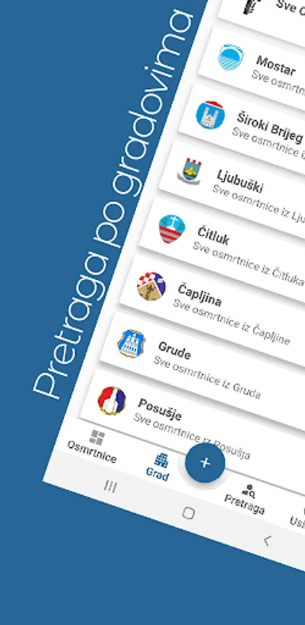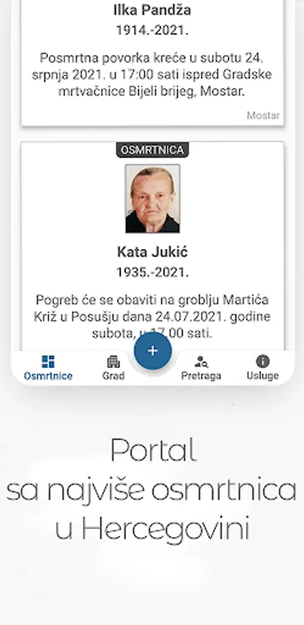 Obituaries from Mostar, Široki Brijeg, Čitluk, Čapljina, Ljubuški, Grude, Posušje, Livno, Tomislavgrad, Konjic, Neum, Stolac, Rama and Prozor and many other cities.