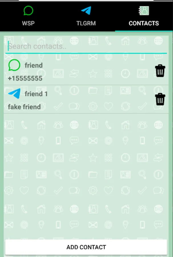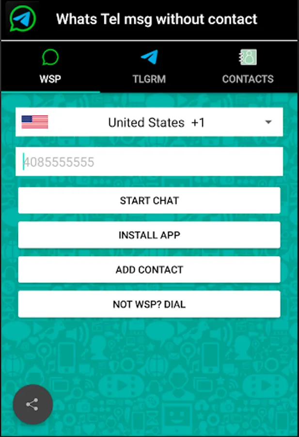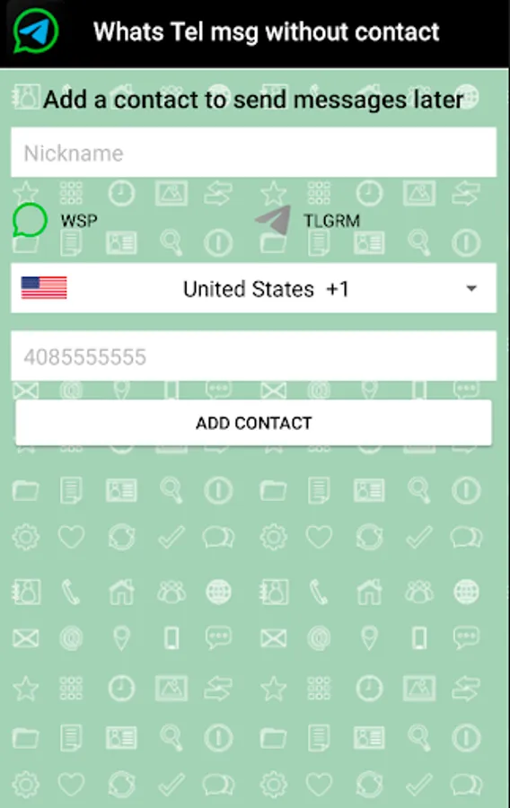Send whatsapp and telegram messages without adding contact. Use a private contact list for casual contacts.