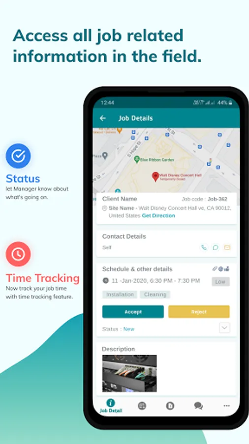 2. Receive job details, contact information, job instructions and direction to job locations on mobile.