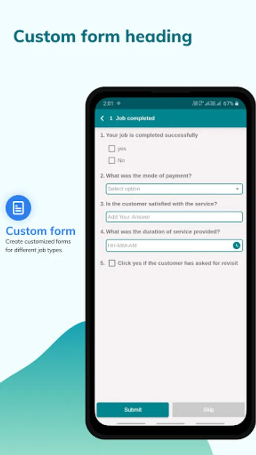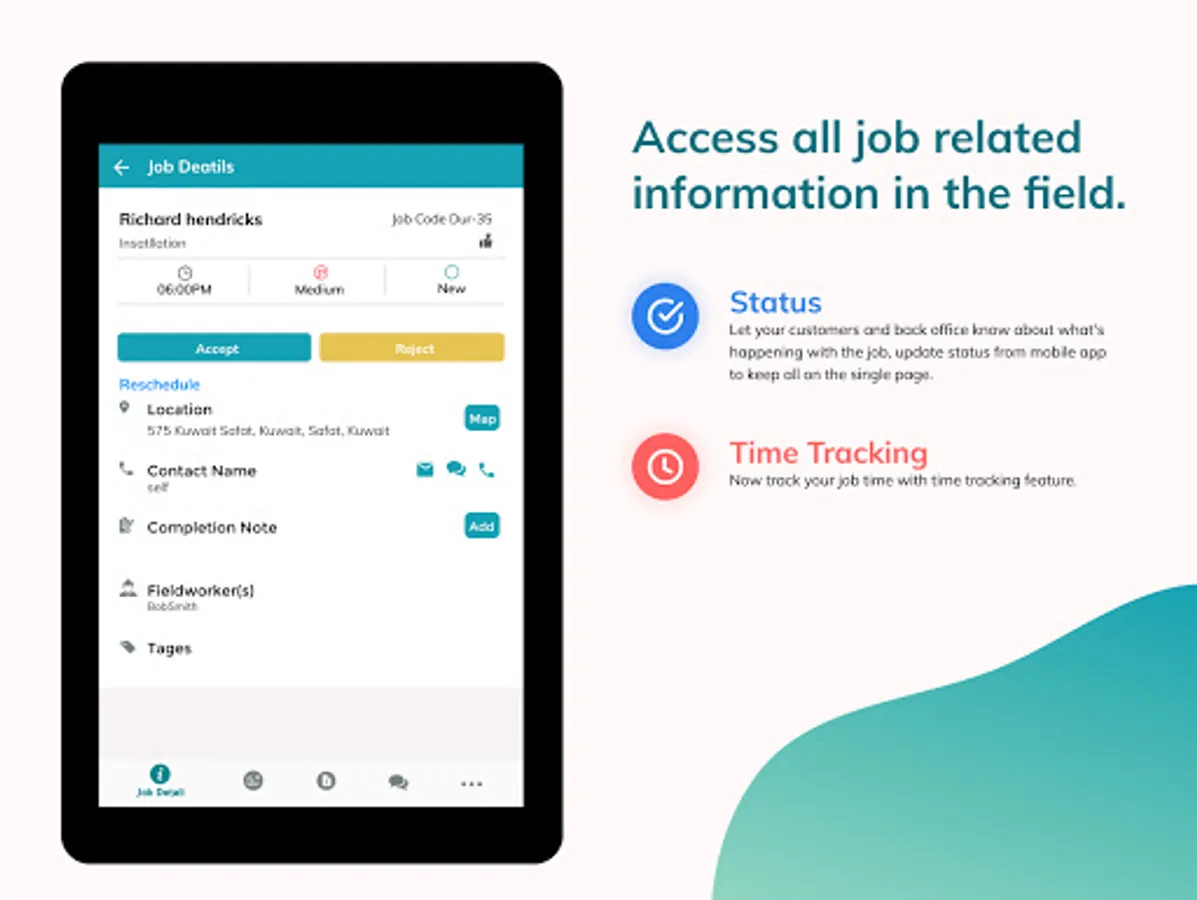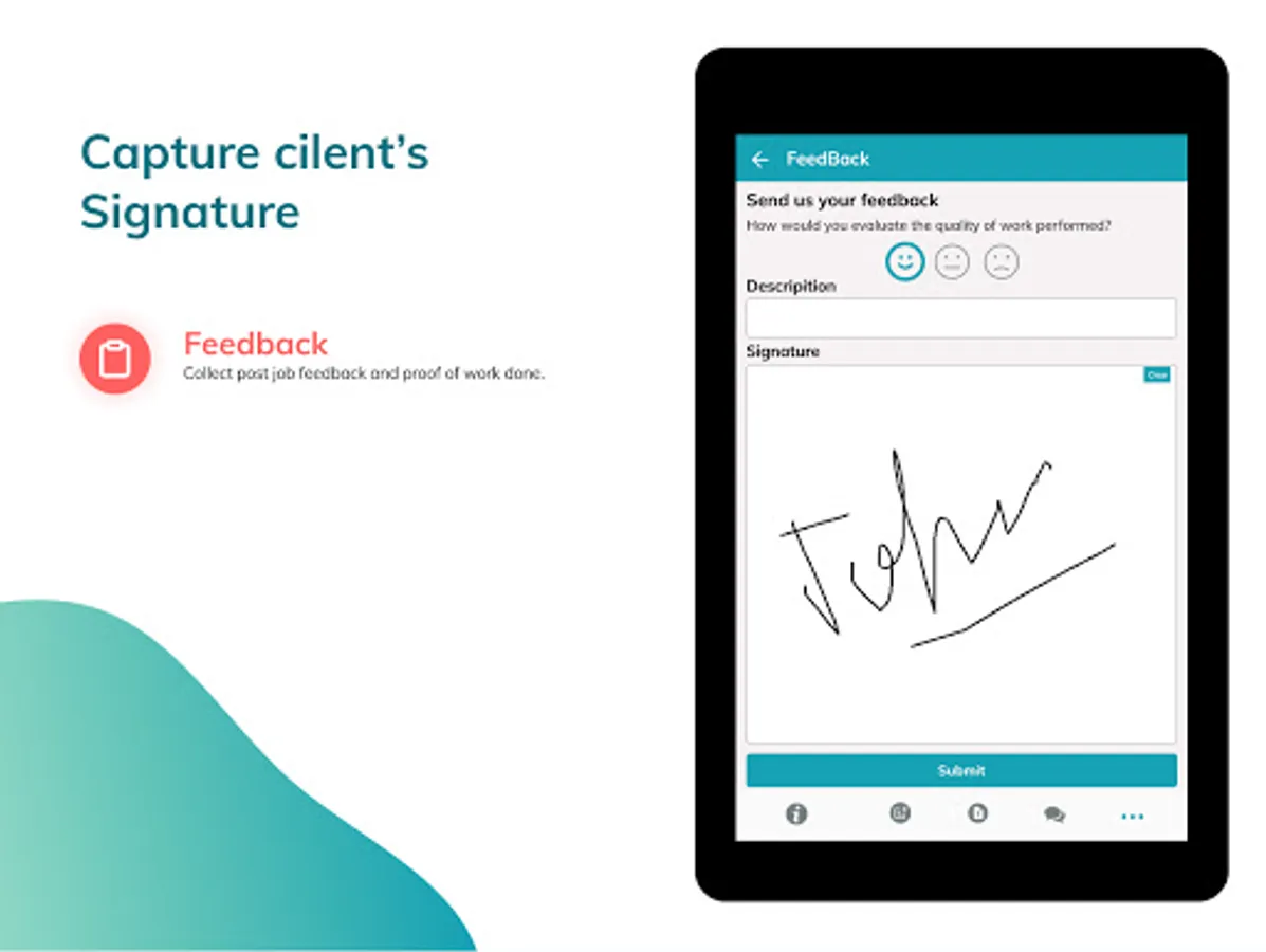 4. Capture job related information such as documents, add parts to job order, fill in completion note, take job feedback and collect client signature in the field.