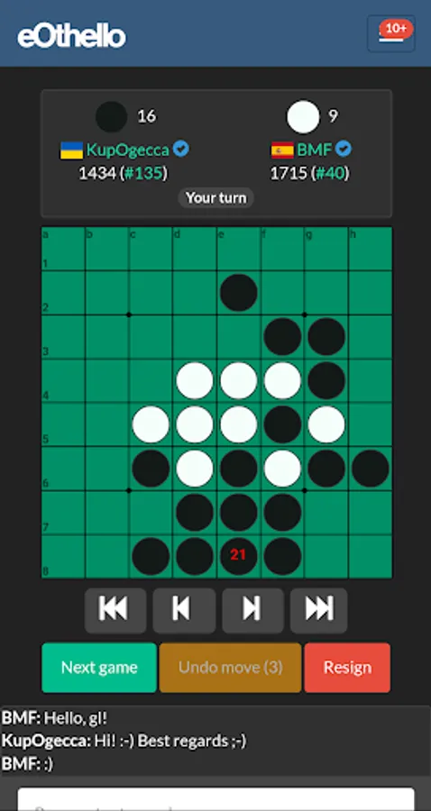 eOthello is an online turn-based Othello app where you can play this strategy game against Othello players from all around the world.