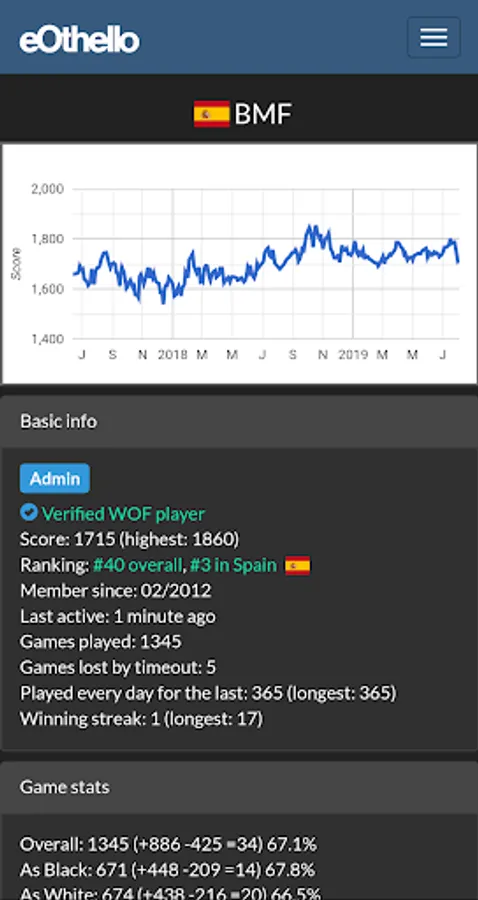 ・Verified accounts for players with official WOF (World Othello Federation) ratings.