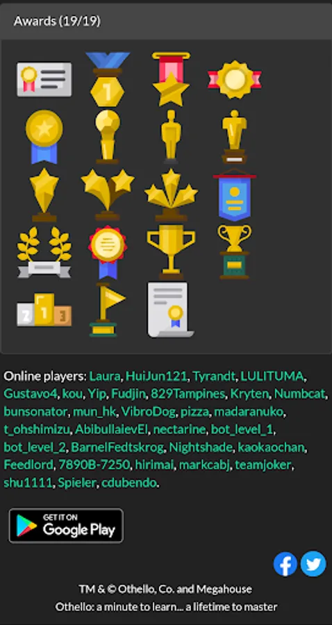 Follow us for news and updates on https://www.facebook.com/eothello and https://twitter.com/eothello_game.
