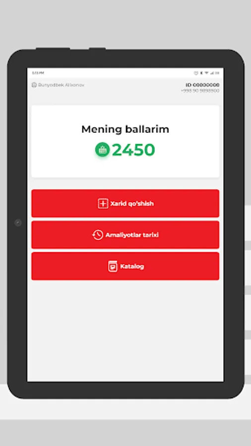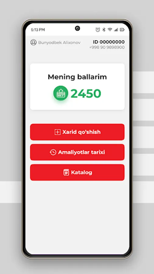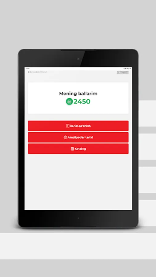 - Mahsulotlar katalogini ko'rish va boshqa imkoniyatlar. Katalogda har bir mahsulotning bonus balldagi qiymati ko'satilgan.