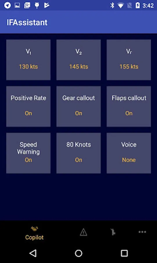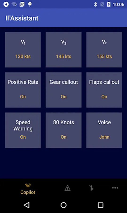 Hear over 30 co-pilot voice samples during your flight, whether it's takeoff callouts like "V₁", "Rotate!", or "Positive Rate", or whether it's warnings when speed limits are being approached, or confirmation callouts when setting flaps or gear settings.