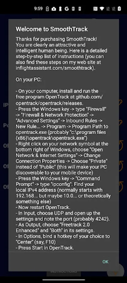 SmoothTrack provides 3D head tracking for your sim games, using the AR capabilities of your device. Any game that supports TrackIR works with SmoothTrack!