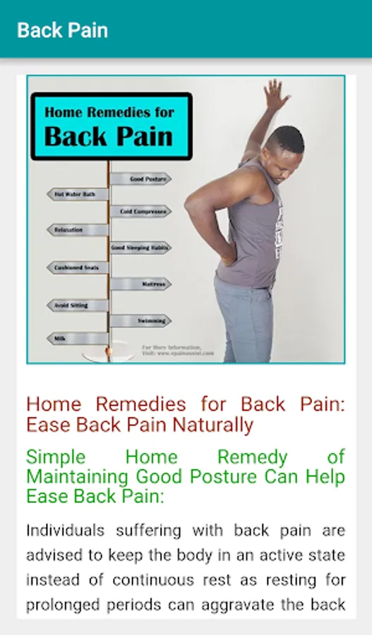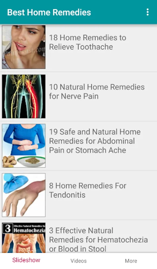 This app provides information on some of the best home remedies for abdominal pain, abdominal bloating, sinusitis, arthritis, back pain, how to remove blackheads naturally, home remedies for diarrhea, ear infections, how to lighten smokers lips with home remedies, and many more health conditions.