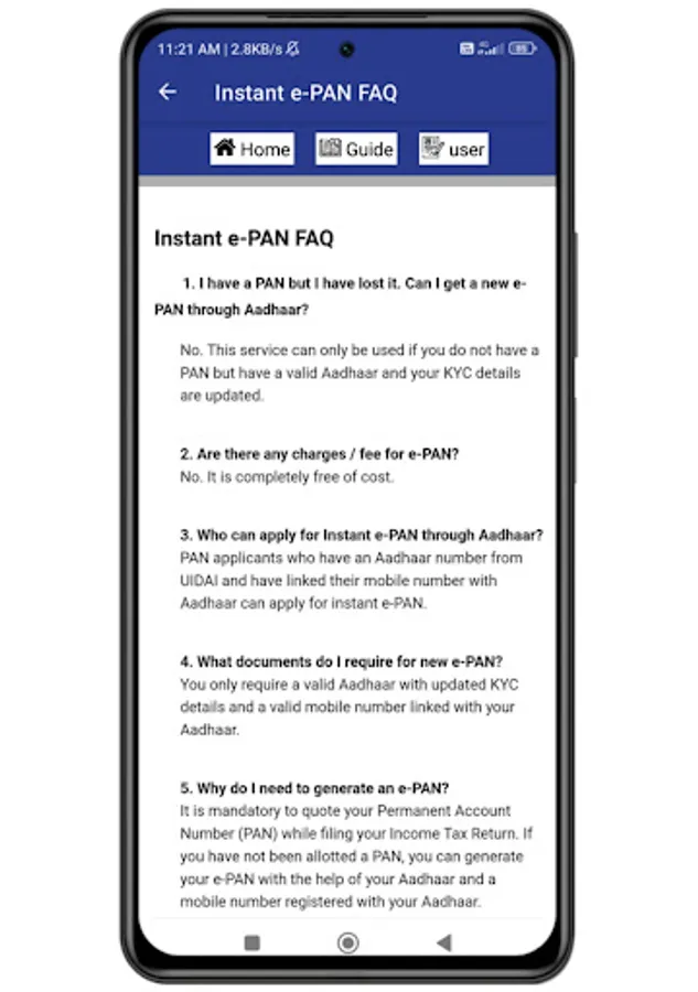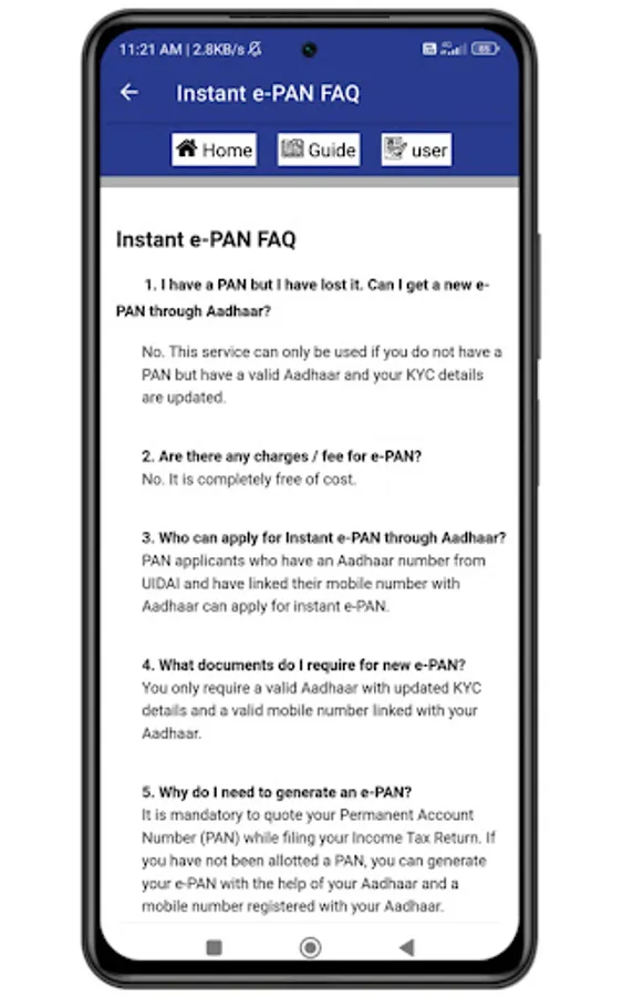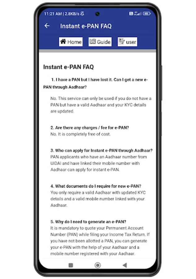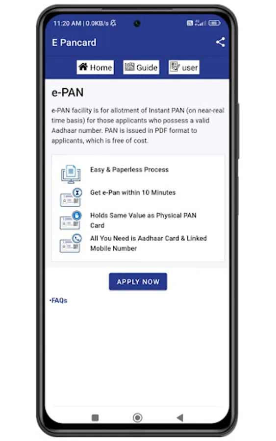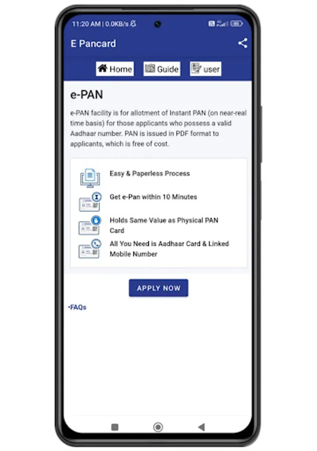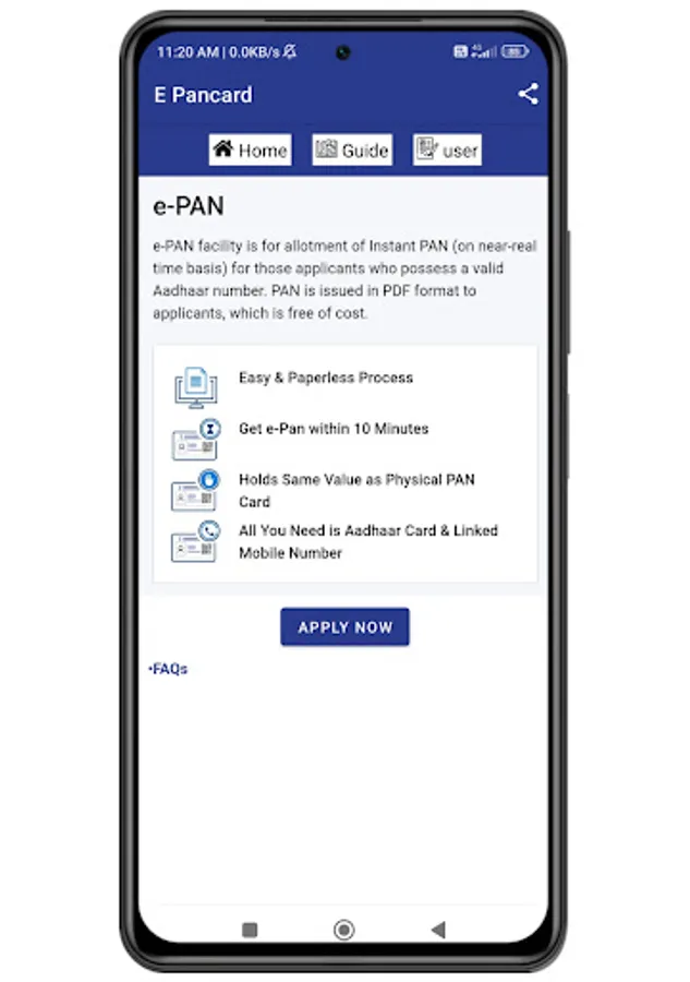 e-PAN facility is for allotment of Instant PAN (on near-real time basis) for those applicants who possess a valid Aadhaar number. PAN is issued in PDF format to applicants, which is free of cost.