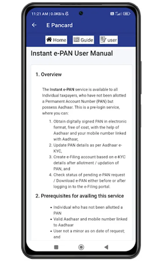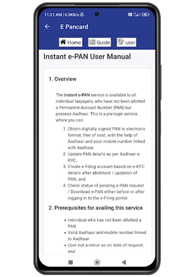 The Instant e-PAN service is available to all Individual taxpayers, who have not been allotted a Permanent Account Number (PAN) but possess Aadhaar. This is a pre-login service, where you can: