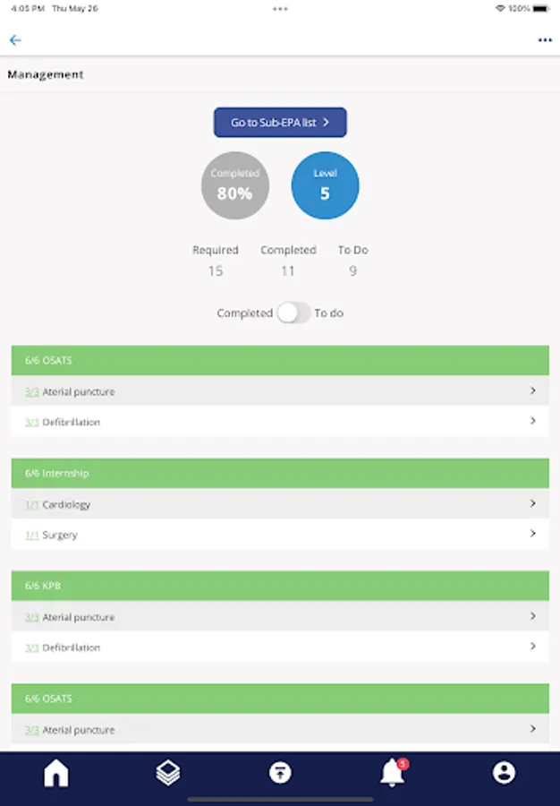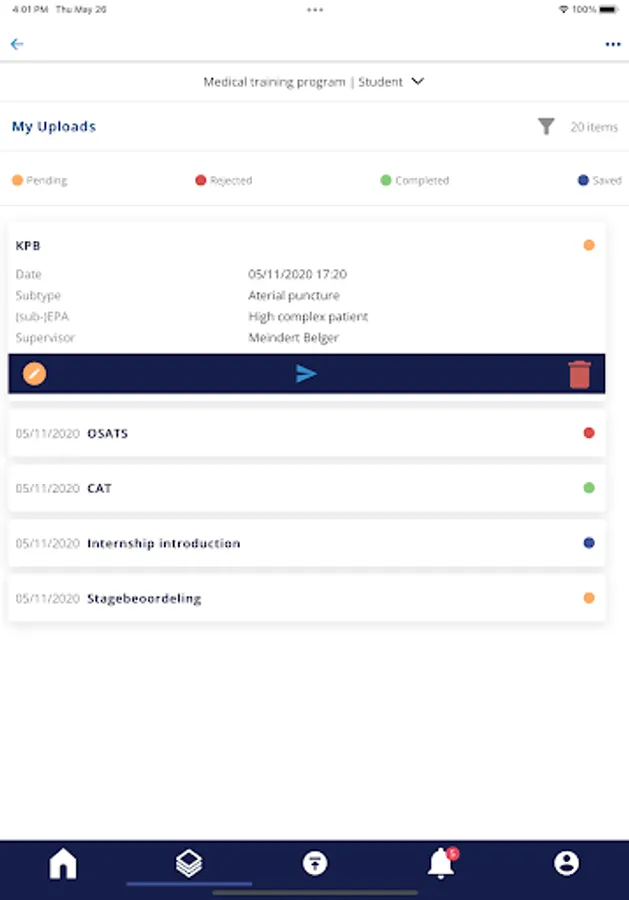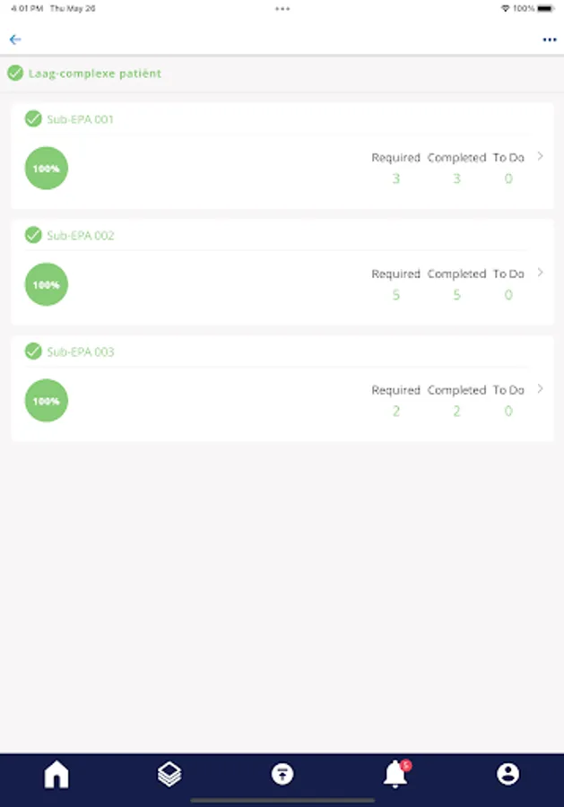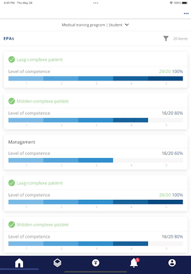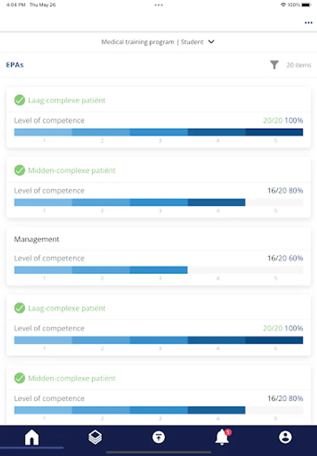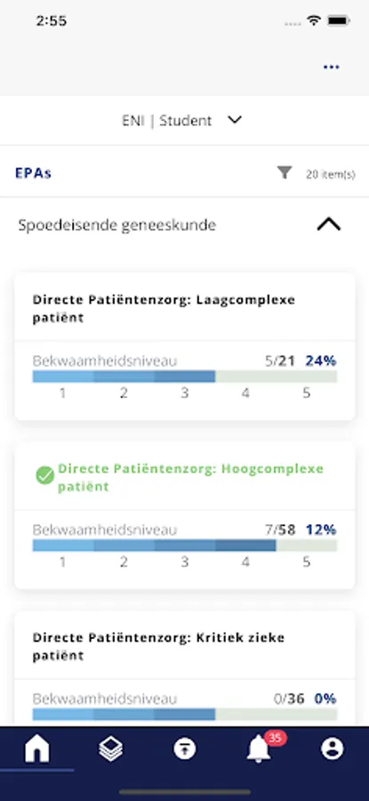 You always have your portfolio at hand with the ExpertFolio app. In the app you can use the most important functionalities of ExpertFolio that you use every day; you'll see EPA progress, forms can be uploaded, and it's super easy to create assessments.