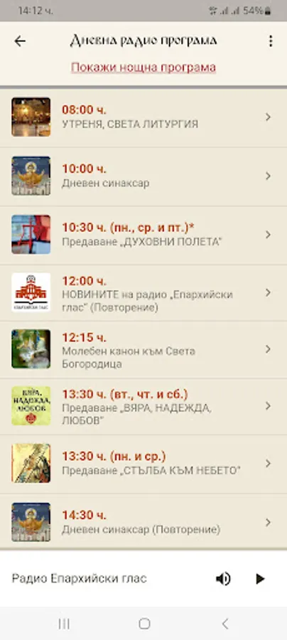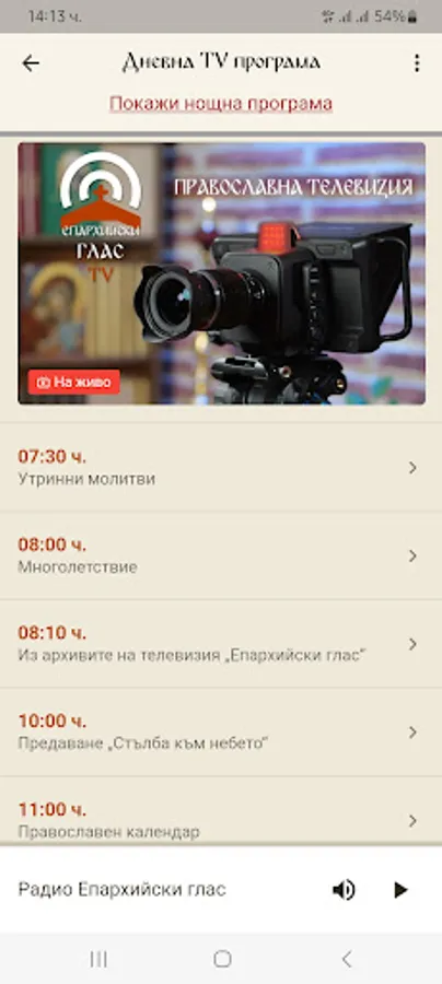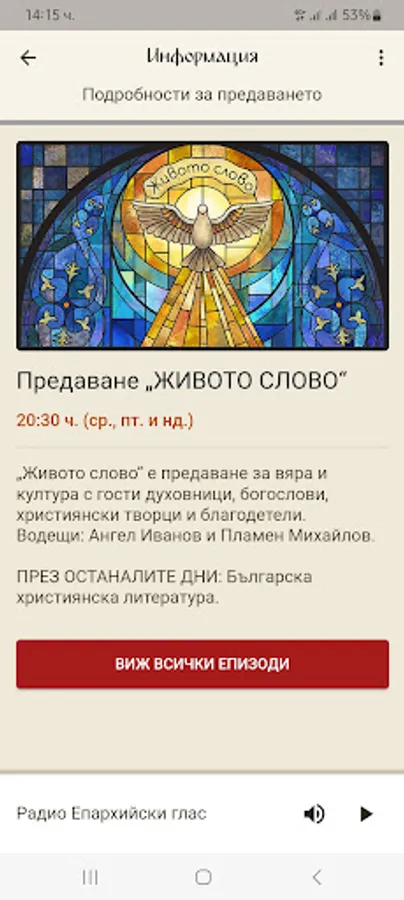 In the application, you can follow the program, broadcasts and live broadcasting of radio "Diocese Voice", also available on the website: https://radio-glas.mitropolia-sofia.org/