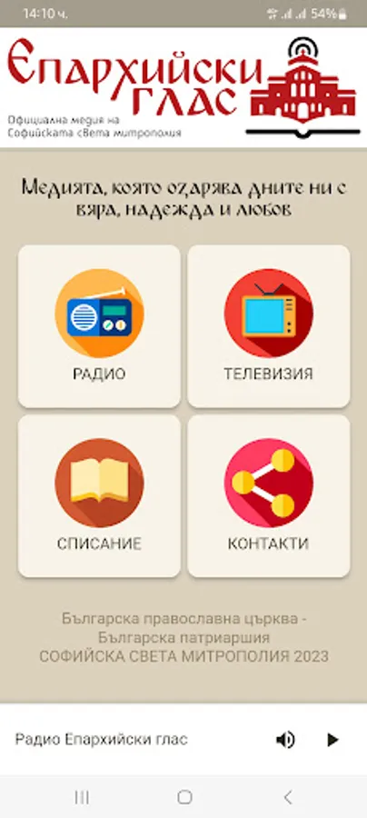 "Diocese Voice" is the first mobile application in Bulgaria for Orthodox audio-visual production and printed publications, representing the official media of the Holy Metropolis of Sofia.