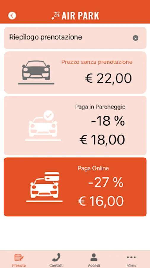 Rates, payment methods and booking methods are those of the most modern airport car parks, with specific offers and discounts, as well as the possibility of making reservations and payments online, or with credit cards and debit cards, or in cash, directly in the parking lot.