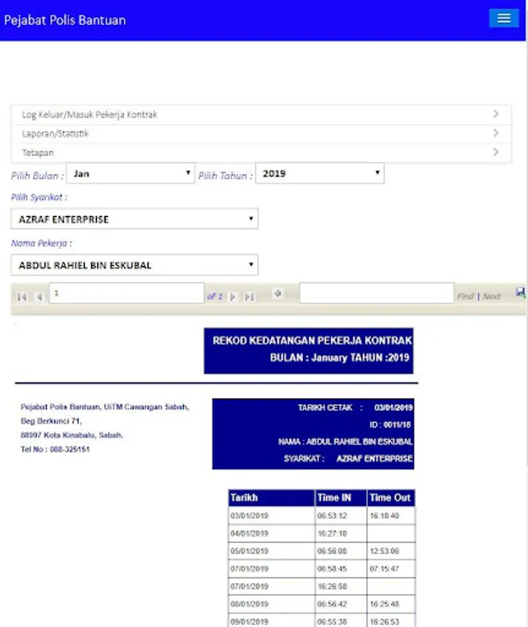An App developed to monitor the access of contract workers in and out of UiTM Sabah