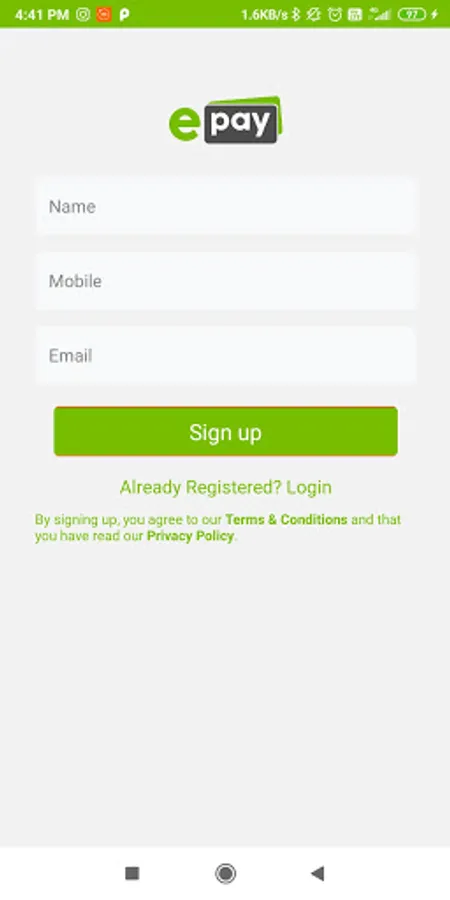 Registration is FREE! To register, download the Epay app and log in using the same login credentials (username and password) for your online banking with your participating bank.