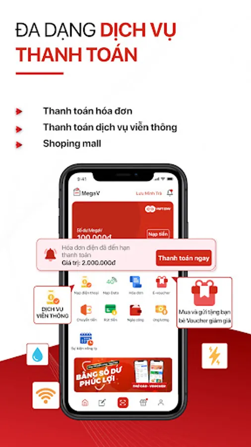 MegaV - Electronic wallet that supports payment and processes customer payment requests quickly, developed by VNPT Electronic Payment Company (VNPT EPAY), licensed by the State Bank of Vietnam