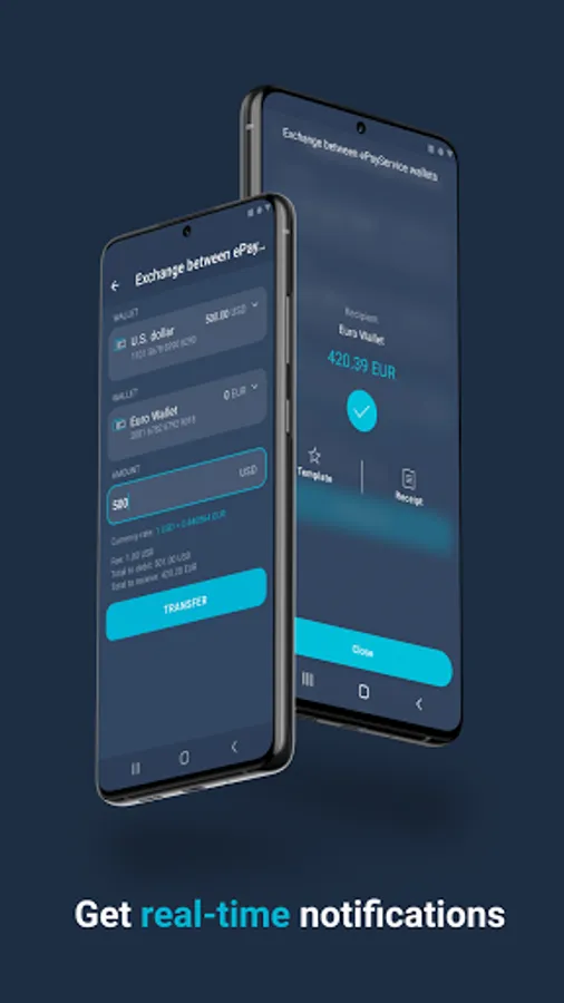 - Check current balance of your ePayService account in USD and EUR as well as the balance of your debit/virtual card account;