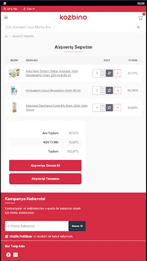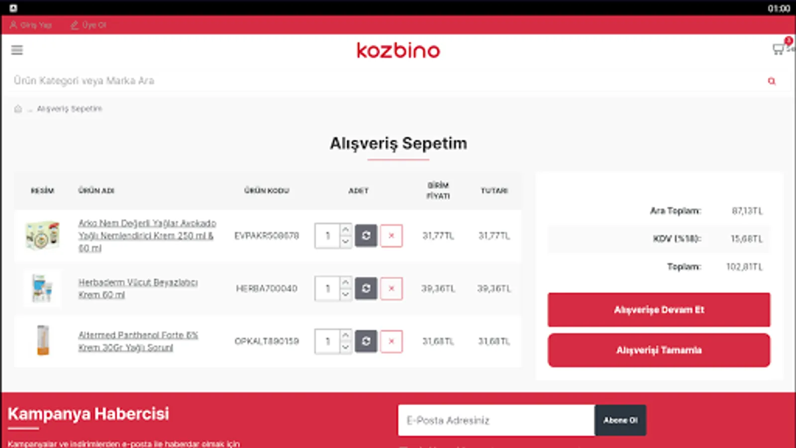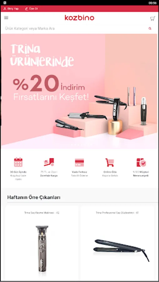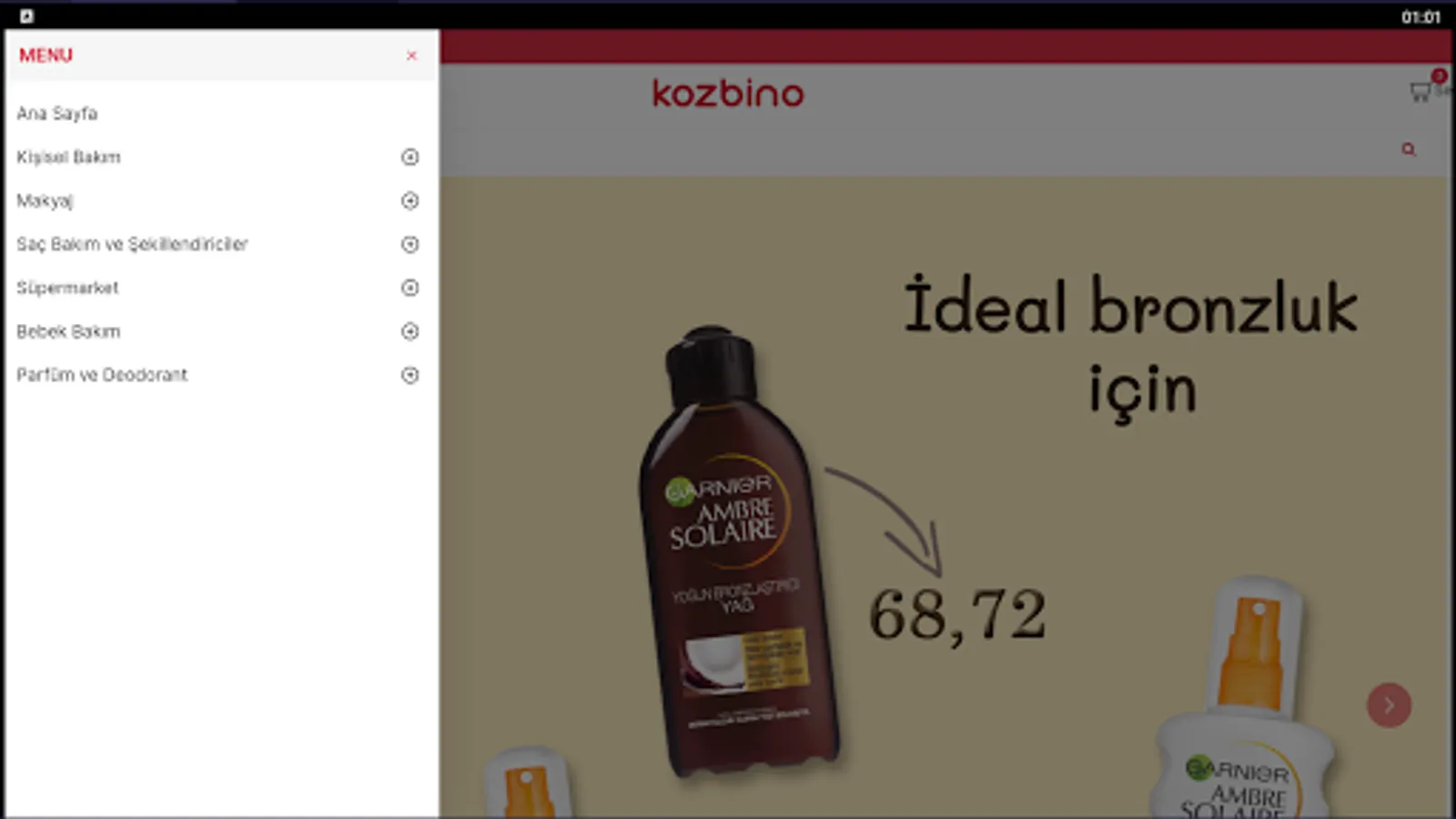 By downloading the Kozbino application, you can enjoy 24/7 online shopping. You can receive products in many categories such as make-up, personal care, hair care, skin care, mother and baby and all over Turkey, and you can follow up the order. When the price of the products you like drops, you can learn before everyone else and be the first to know about the campaigns. Download our application now and experience this pleasure!