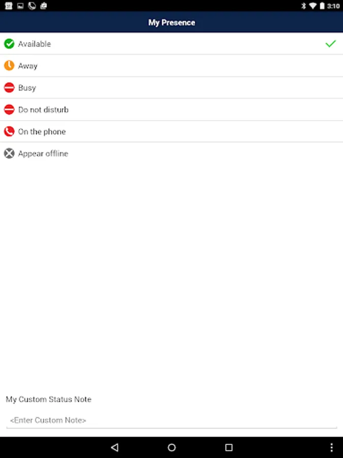 • Presence and IM: Shows which contacts are available, offline, or idle. Users can message individual users, multiple users or departments.