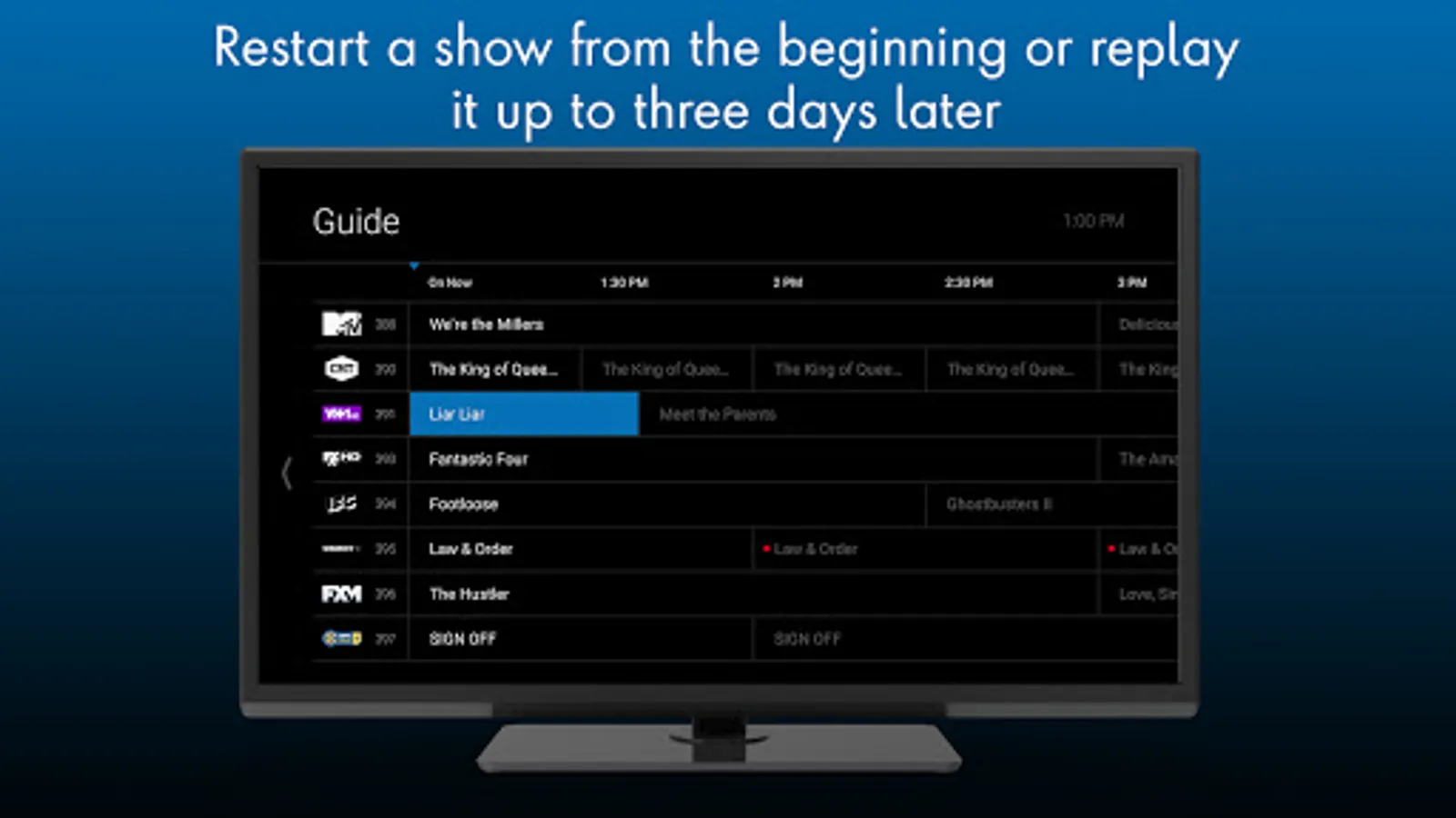 • Replay: Never miss another show! Replay and watch shows and movies up to three days after they air. You don’t even have to set to record or wait for shows to appear in the video on demand library!