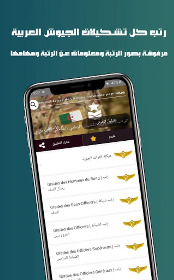 Military ranks in Algeria are divided into 5 (five) classifications (we start from the base to the top):