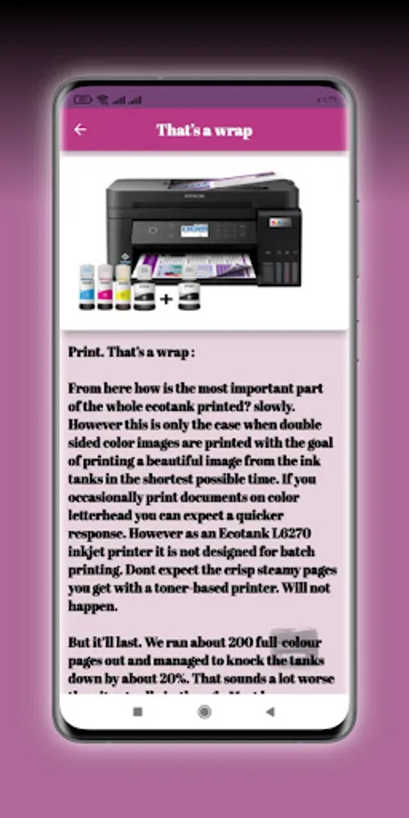 You can find all the details you need about the latest printersEpson Ecotank L6270 WiFi in this app.