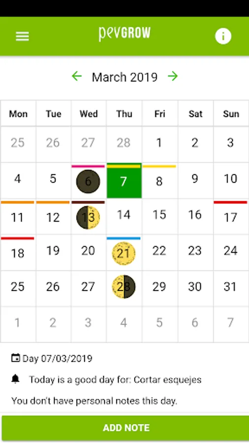 In this new version, we have incorporated the possibility of adding your personalized notes every day, so that you can save the notes you need for your plants and your crops as an agenda and reminders.