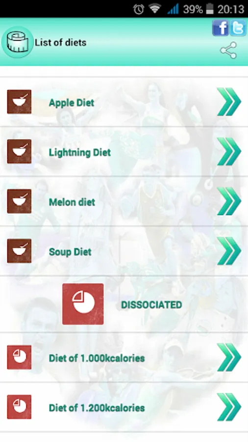• List of diets: macrobiotic, balanced, dissociated and cleansing.