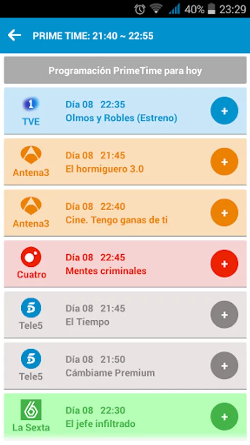 * PrimeTime display. It allows to know the programming of the prime time schedule.