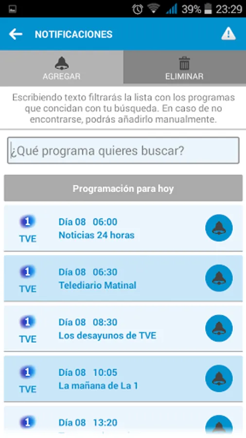 * You can schedule notifications so that the application warns you when your favorite shows are going to be televised.