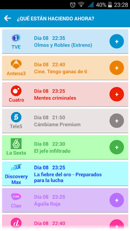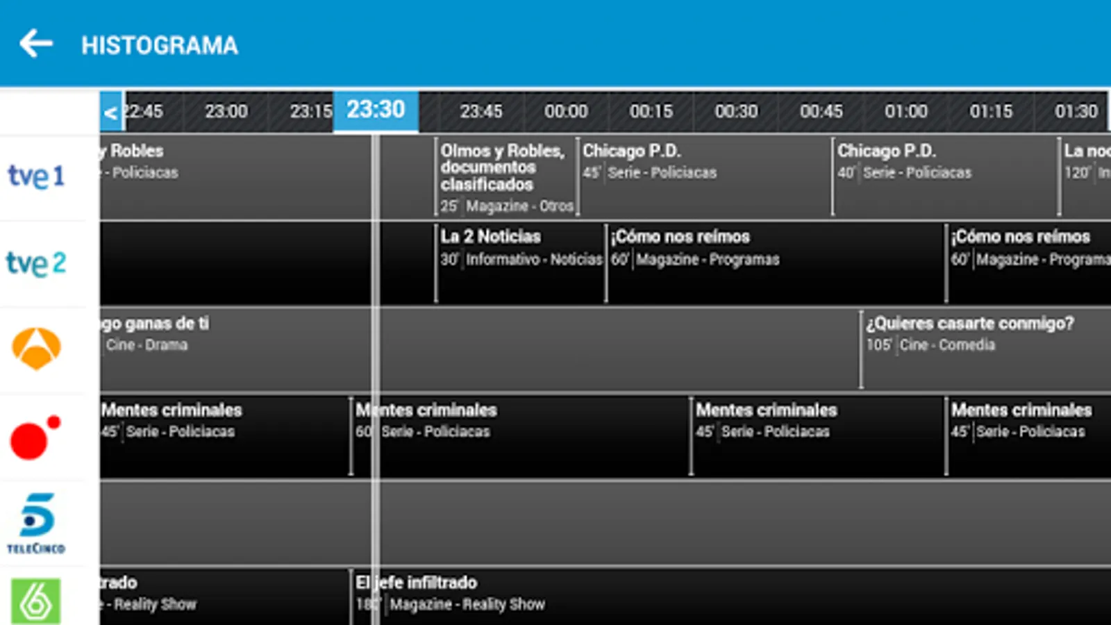 Guide on all the programming of television tv and DTT in Spain. You will be able to see a list of the billboard that is going to be broadcast with information and the time of more than 50 Spanish television channels, both national and regional.