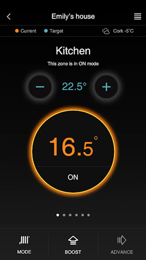 your homes, zones, boost function, mode change, schedule screen, home and account setting menu and much more.