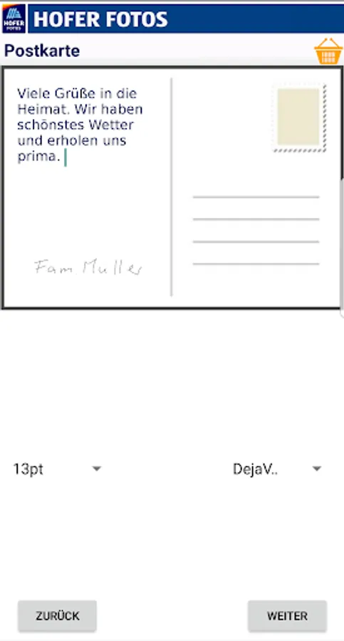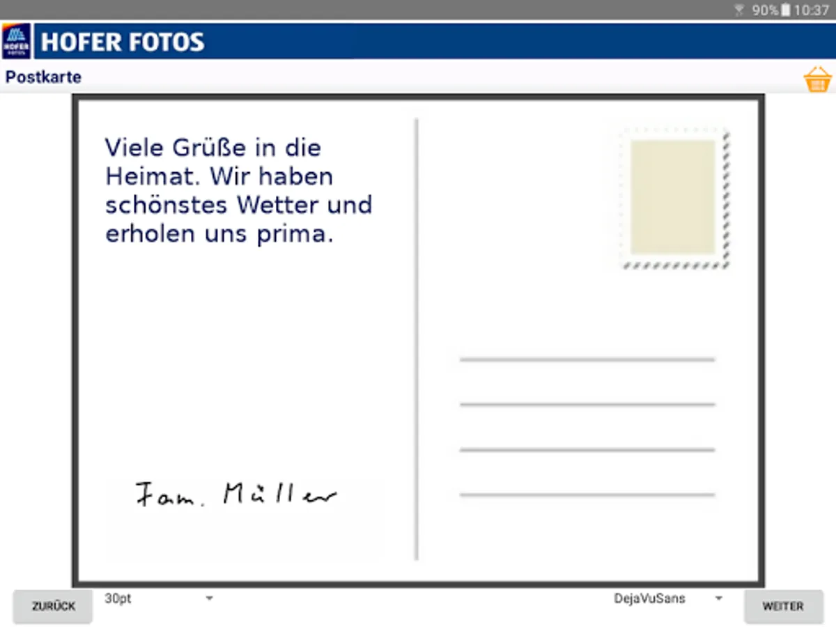This app provides you with a special added benefit when ordering postcards. You are able to send your greetings with your own motif and individual text directly from your holiday resort to anywhere across the world. Your greetings card is produced in our laboratory and sent directly by post to your friends and relatives.