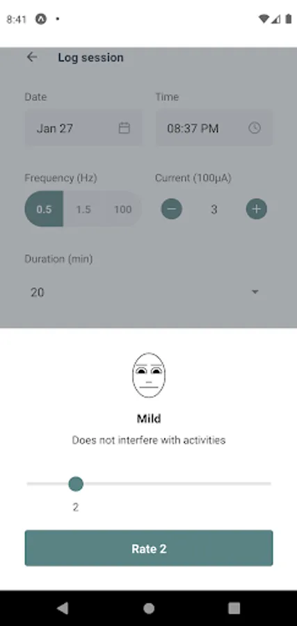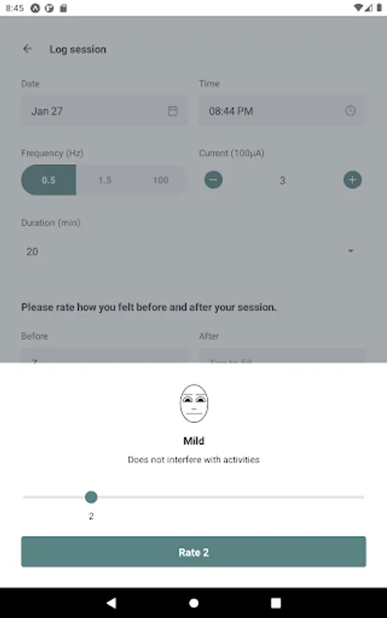Quickly log the details of your Alpha-Stim sessions, such as date, time, and current level, and rate how you felt before and after your session. Then see which settings gave you the best results, letting you personalize your treatment.
