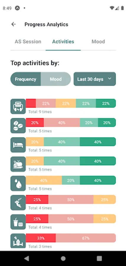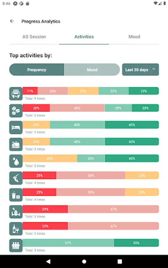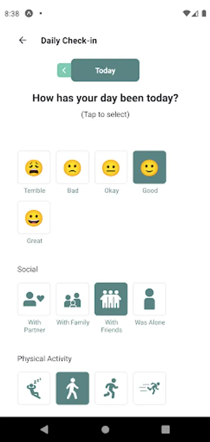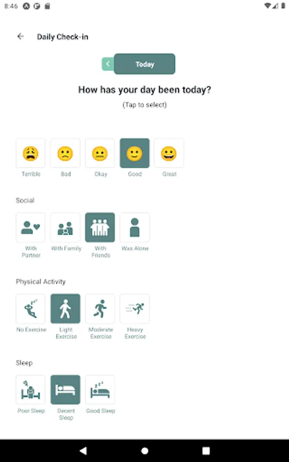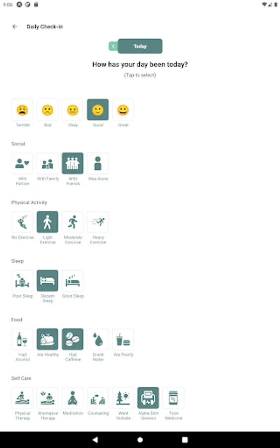 Beyond using your Alpha-Stim, there are other activities that have an impact on mental health. With daily check-ins, you can keep a journal of your activities and mood without having to type a single line.