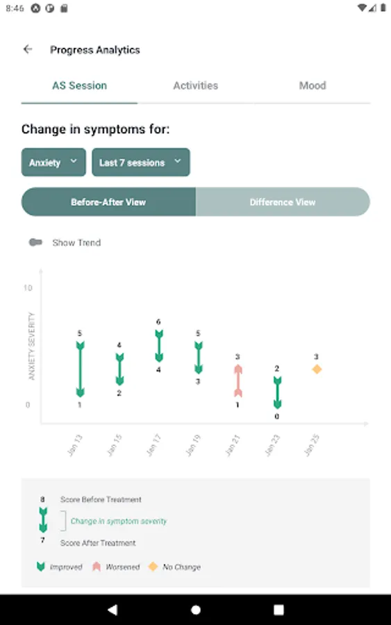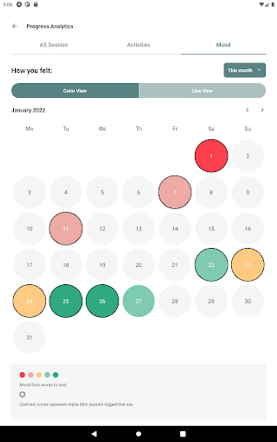 See your progress as you track your sessions, activities, and moods. Which Alpha-Stim settings give you the best improvement? How long before you started feeling better? What daily activities boost your mood, and which ones make things worse? Everyone’s Alpha-Stim and mental health journey is different - and now you can see yours in real time.